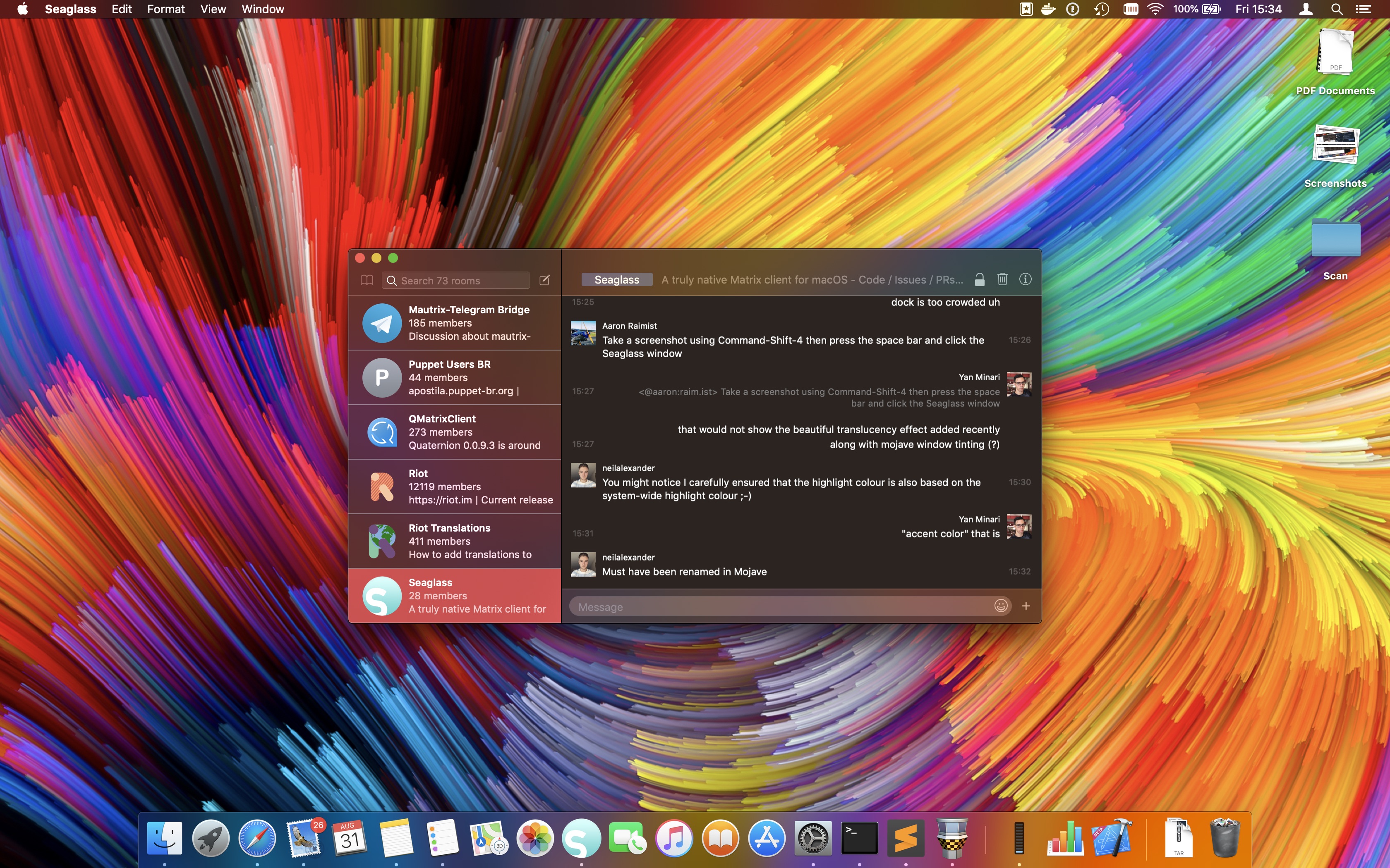 Seaglass now has some early support for inline images and attachments, and supports Quick Look. Also handles emotes and notices better. It also has version numbers now, various other little fixes and Aaron Raimist has been working on auto-update support.