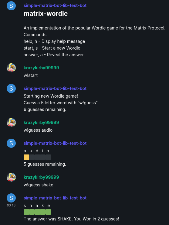 An implementation of the popular Wordle game for the Matrix Protocol.